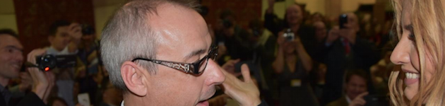 À Beaune, lors d'une vente aux enchères de grands crus classés, l'ex-top model a fait monter les enchères en offrant ses propres lunettes.