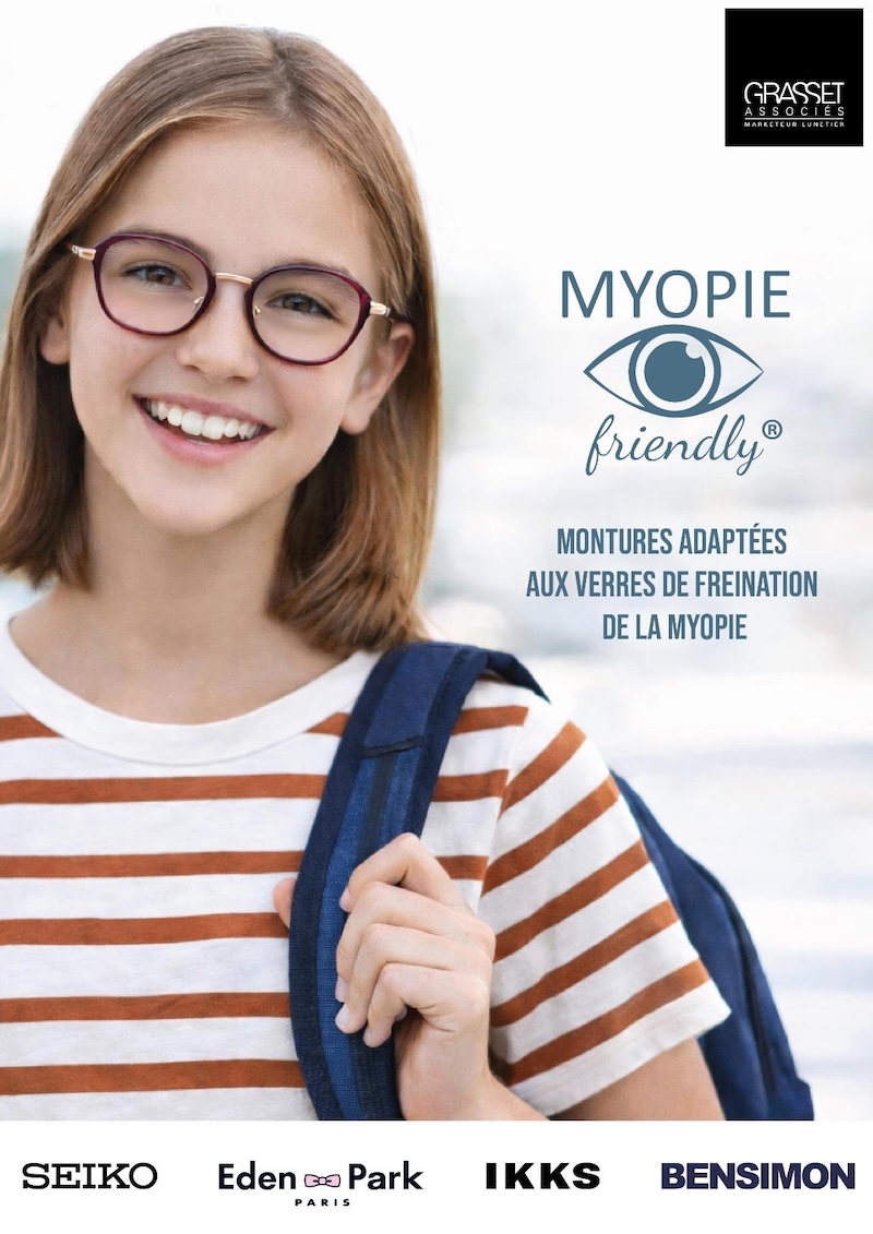 Un label dédié pour faire rimer produits et myopie ? C’est ainsi, oui, que l’on pourrait résumer la nouvelle initiative de Lunettes Grasset. Alors qu’un des enjeux de la santé visuelle est de répondre à l’augmentation de la myopie chez les enfants et les adolescents, le lunetier français a créé et déposé le label "Myopie Friendly". Ce logo identifie « des montures spécialement conçues pour accueillir des verres de freination de la myopie, selon des critères techniques stricts : centrage pupillaire optimisé, géométrie adaptée aux zones fonctionnelles des verres, tenons ajustables et branches cylindriques assurant confort et maintien sur de longues durées de port », indique le lunetier tricolore. « Le label "Myopie Friendly", ajoute-t-il encore, constituera une indication pratique pour les opticiens et les familles, tout en rappelant que la validation finale du choix de la monture restera du ressort du professionnel de santé visuelle, en fonction de la morphologie du porteur. » Dès ce mois de février, les collections maison Eden Park, IKKS, Bensimon et Seiko bénéficieront donc de modèles adaptés aux verres de freination de la myopie reconnaissables avec ce nouveau logo dédié.