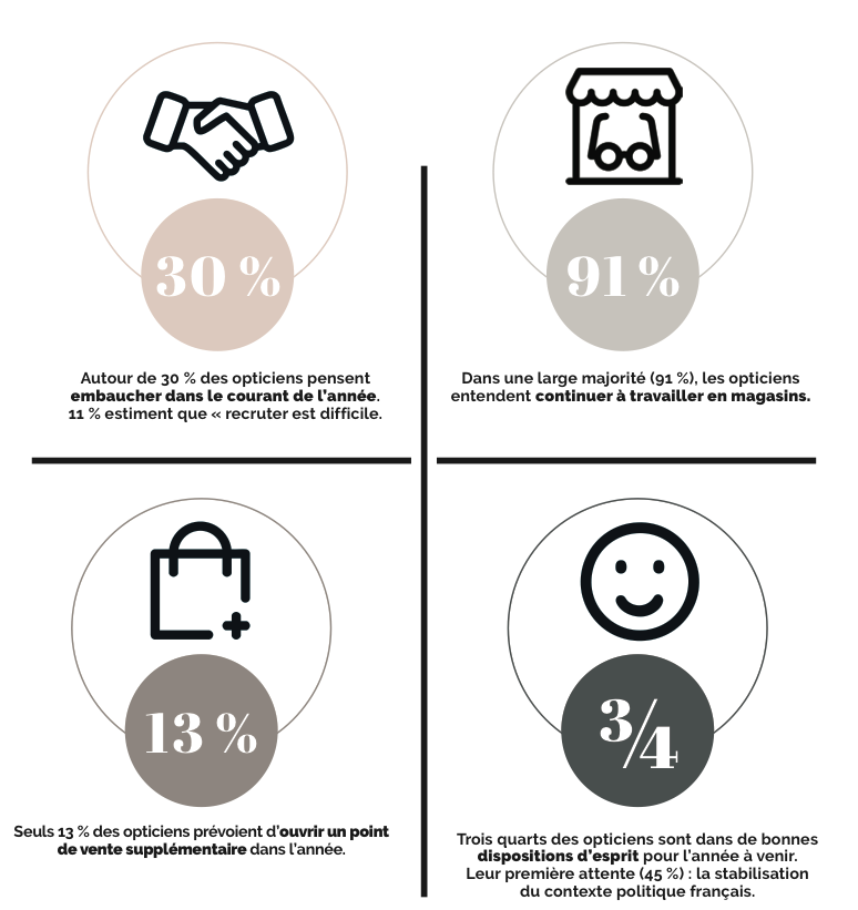 Nous avons réalisé un sondage portant sur le bilan 2024, mais aussi et surtout sur les projets des opticiens en 2025. 155 répondants y ont participé. Coup d’œil, à travers cette infographie, sur les principaux résultats-clé.
