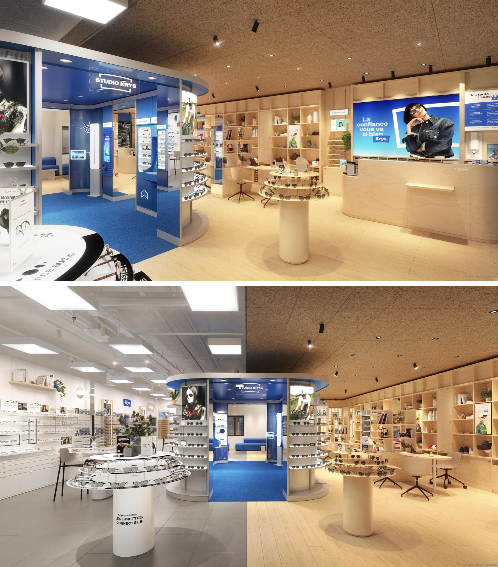 « Pensé pour conjuguer expertise santé, shopping et innovation », l’endroit invite à une déambulation libre. L’idée est de permettre au client de circuler dans le point de vente, de l’entrée avec « des "Hot Spots" qui mettent en lumière les dernières actualités de la marque et les innovations (en ce moment, les lunettes connectées), au "Studio Krys", décrit par l’enseigne comme un « véritable carrousel expérientiel au centre du magasin », intégrant des modules pédagogiques et ludiques. Ailleurs, il y a un "Bar à verres" (pour choisir le traitement et couleur des verres) ou un coin dit "Photobooth" (pour partager des visuels sur les réseaux sociaux)… Bref, l’espace se veut en tous points immersif, imaginé pour transformer « la santé en une expérience sensorielle et mémorable ». Façon de dire que le lieu de vente doit d’abord être un lieu de vie qui rime avec envie. C’est un peu, au fond, ce qu’explique Bruno Censier, le directeur de la marque Krys : « L’optique et l’audition ont longtemps été vécues comme des nécessités de santé parfois pesantes. Notre ambition avec ce nouveau concept est de transformer cet acte d’achat "subi" en un moment "choisi" et plaisir. Il s’agit de proposer une expérience désirable sans jamais perdre notre crédibilité de professionnels de santé, qui reste le socle de notre légitimité et de la confiance de nos clients. »
