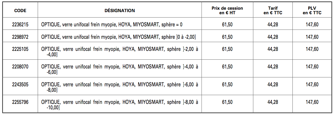 « Le verre est reconnu sous son nom de marque MiYosmart, qui doit figurer sur l’ordonnance, avec la mention de MiYosmart code LPP 2236215. Cette prescription doit être respectée. La base de remboursement de MiYosmart lié à son code LPP nom de marque sera 44,28 euros [alors que ce remboursement se limitait jusque-là à 0,05 euros]. Celle-ci sera ensuite complétée des prises en charge des complémentaires santé selon le contrat responsable des parents. Afin d’assurer un équipement maximal de ces enfants prioritaires, un prix limite de vente de 147.60 euros TTC par verre sera appliqué », détaille Hoya. Quid des jeunes porteurs myopes dont les besoins de correction sont hors des indications de la HAS ? « Pour qu’aucun enfant ou adolescent myope ne soit exclu du port du verre MiYosmart, car ne rentrant pas dans ces indications thérapeutiques prioritaires, une prise en charge reste possible avec MiYosmart Open comme actuellement pour près de 1,6 million d'enfants et adolescents myopes. Les ophtalmologistes, orthoptistes et opticiens pourront ainsi répondre à tous les cas d’évolution de la myopie avec MiYosmart mais avec un code EDI (Échanges de Données Informatisées) distinct. »