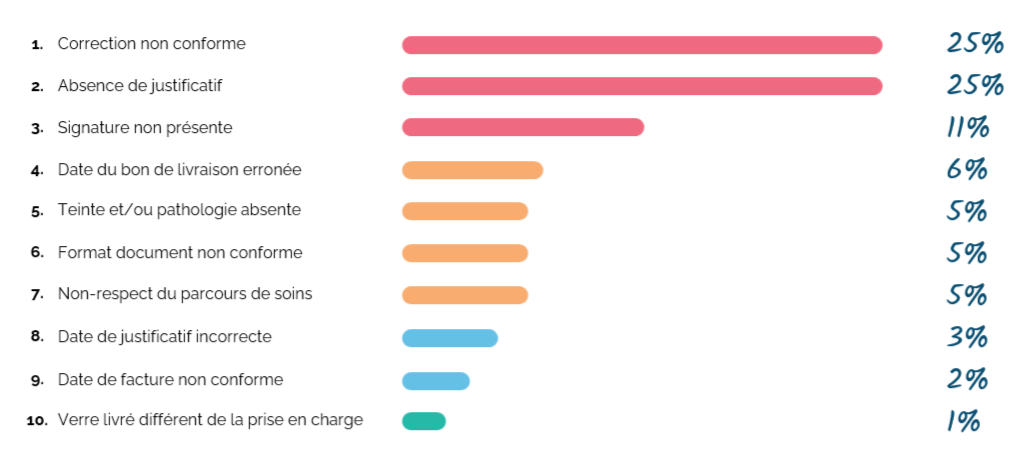 « Entre 6 et 7 milliards d’euros sont consacrés chaque année aux dépenses optiques, c’est colossal, et il est primordial que ces sommes soient utiles à la bonne santé visuelle des Français. La lutte contre les abus et la fraude permet de veiller à l’utilité de ces dépenses en dissuadant les actes de certains professionnels ou bénéficiaires qui abusent du système au détriment de tous. Au regard des sommes en jeu, elle est, malheureusement, devenue vitale pour la pérennité du système de santé français. En luttant contre les abus et la fraude, nous permettons finalement aux bénéficiaires d’accéder à des produits de qualité tout en réduisant au maximum leur reste-à-charge », explique d’entrée de jeu Aurélie Barbereau, la présidente du directoire d’Isea (dont Itelis est, rappelons-le, une des marques depuis 2001). Aujourd’hui, selon les estimations communes de l’Assurance Maladie et des Ocam, le montant de la fraude en optique s'élèveraient à 7 % des dépenses totales. Pour comprendre ce que recouvre précisément ce mot générique - fraude -, Itelis publie depuis cinq ans un classement des abus les plus fréquemment constatés par ses services (voir ci-dessous). Des dérives très variables en gravité et en nombre, et qui ne sont pas toujours intentionnelles, prend d’ailleurs soin de préciser la plateforme : « Toutes les non-conformités ne relèvent pas forcément d’une tentative d’abus, mais peuvent résulter d’une négligence ou d’un simple oubli qui se traduit par le rejet du dossier. Pour autant, la fraude, lorsqu’elle est avérée, peut se révéler coûteuse et difficile à détecter, d’où l’importance de se doter des bonnes solutions alliant expertises et technologies. »