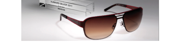 L'autre récompense, le V. Awards 2011, a été attribuée au concept solaire "cousu main" issu de la ligne Renoma, marque sous contrat avec JF Rey. Avec seulement un fil nylon comme système d’assemblage technique, le modèle solaire baptisé Ryan n’est pas passé inaperçu à la cérémonie des V.Awards 2011, du nom du magazine asiatique qui l'organise, et qui s’est tenue à Hong Kong en novembre dernier dans le cadre du salon HK Optical Fair. Sans collage ni soudure, ce système exclusif de fixation extrêmement précis est une première en lunetterie, toutes les pièces étant assemblées par un fil nylon. Avec une surpiqûre élégante et très colorée, et dans un esprit “prêt à porter”, le concept rend hommage à l’univers couture de la marque.