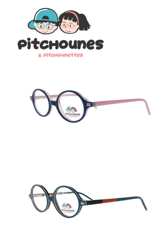 Imaginée en 2000 par JBC, la marque Pitchounes & Pitchounettes est aujourd'hui relancée par KNCO, spécialiste de l’enfant (Catimini, Jacadi, Haribo...). Il s’agit « d’une marque reconnue pour ses montures parfaitement adaptées à la morphologie des plus petits avec des formes hautes, ovales ou rondes couvrant parfaitement le champ visuel des enfants », explique l’entreprise normande. Elle s'adresse aussi bien aux filles qu'aux garçons, âgés de 3 à 7 ans. Cette collection revendique une technicité certaine, avec un pont bas ainsi qu’une spatule arrondie pour faciliter le rhabillage dans les deux sens. D’un point de vue esthétique, les montures Pitchounes & Pitchounettes (une vingtaine de modèles au total) font la part belle aux détails (fraisage, décoration), le tout dans un esprit sportswear.